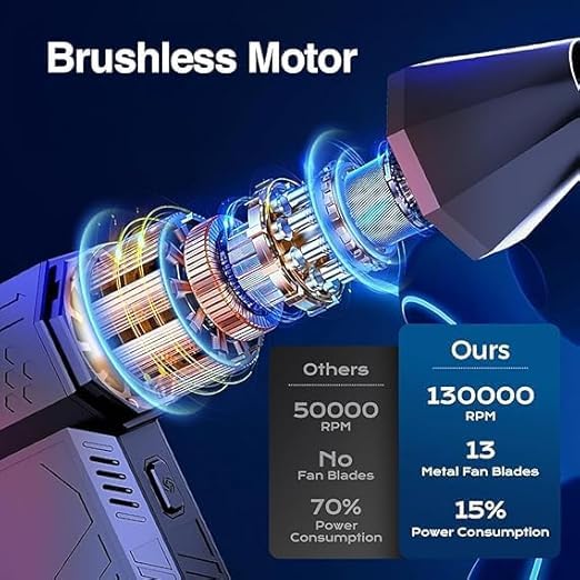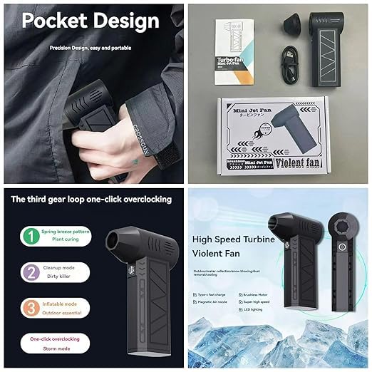 The Handheld Brushless Motor Jet Fan is a compact portable blower designed for personal cooling and directed airflow. It features a high-efficiency brushless motor that provides smooth airflow with reduced noise compared to standard fan designs. The lightweight, ergonomic body makes it convenient for handheld use at home, outdoors, in offices, or during travel. The fan includes multiple speed settings, allowing users to adjust airflow as needed.